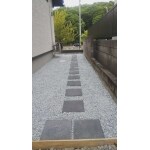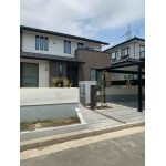 新築のお宅の外構工事をさせていただきました。 カーポート設置、植栽、塀の工事、物置設置を行いました。