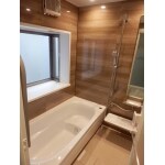 毎日に「しあわせ」と「ゆとり」お風呂の気持ちよさを追求したサザナを ご提案させていただきました。壁パネルは4面「ノルディグレーウッド」 というお色をお選び頂きました。床も壁パネルに合わせて、ブラウン色に。 高級感のあるシックな浴室が完成しました。 浴槽はゆるリラ浴槽です。 入る人をやさしく包み込むデザインの浴槽。 頭と首をしっかり支え、背中を包み込み身体にかかる圧力が分散されるので、 自然とリラックスする姿勢になれます。