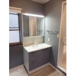 一面鏡の既存洗面台から、収納豊富な三面鏡の洗面台へ交換