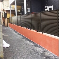 ブロック塀を低くしアルミの目隠しフェンスを取り付けました。ブロックもオレンジ色になりカラフルできれいですね!