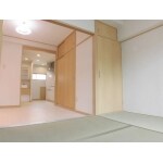 畳は新しく作り替えました。 襖だった間仕切りは3枚引違戸にお取替え。 引違戸にしたことで部屋がナチュラルな洋風テイストに。