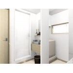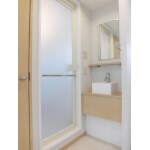 リフォーム後の浴室入口&洗面化粧台