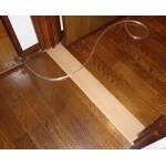 敷居を撤去後、床見切りを施工し段差を解消しています。既存の建具は長さが足りなくなった為、建具下伸長材を使用しています。
