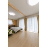 間仕切りを一部撤去し、広々した寝室としました。 ナチュラルなまま構造梁をデザインに取込、オレンジのアクセントクロスとマッチさせました。