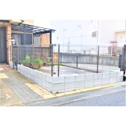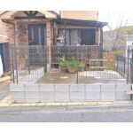 既設の土間コンクリートにブロックを2段積み、ケミカルアンカー打設、LIXILのハイグリッドメッシュフェンスと勝手口門扉の取付けをさせていただきました。