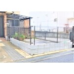 勾配のある駐車場にL字型の仕切りを作り一緒に暮らす愛犬が安心して遊べるスペースをとのご要望でした。