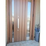 玄関ドアをLIXILリシェントP77型クリエモカで1階親子ドアと2階片開ドアに新しくしました。