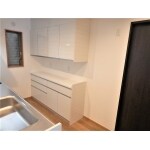 キッチン壁面のカップボードもパナソニックVスタイルをご提案しました。 同じシリーズのカップボードを設置した事で効率よく作業が進み、統一感のある清潔な空間になりました。