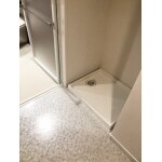 床を張り替えと併せて、ドラム式洗濯機も設置できる大きさの洗濯機パンにご交換。 洗濯機水栓も縦型洗濯機に合わせた高さに設置されていたので、ドラム式洗濯機にも合わせた高い位置に移設しました。