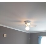 お部屋のグレード感をアップする天井洋風廻り縁、 建具と収納の温かみある木質にあわせたベージュ+奥様がお好きなグレーを併せ持ったグレージュの壁紙をご提案。 天井クロスは塗り壁調の爽やかな白をお薦めしました。