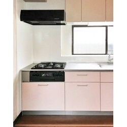 ピンクの可愛らしいキッチンになりました。作業台に調味料などの物があふれていましたが開き戸から引き出し収納になったので収納もしやすく奥のものまですぐに取れるので作業効率がUPしました。