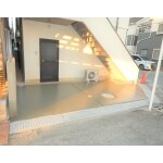砂利敷きの駐輪スペースのブロック塀を一部撤去し、駐車ができるコンクリートを施工しました。 まず既設ブロック塀の一部を撤去後、新設フェンスを設置工事をしました。 砂利だったスペースには鋤取り工、転圧、ワイヤーメッシュ筋敷設、伸縮目地、生コンクリート工事を施し左官モルタル刷毛引き仕上げを2度塗りで完成です。