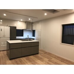 2世帯6名様ご同居。若奥様が使い勝手のよい、モダンでシックなキッチンとダイニングにとのご要望でした。