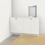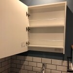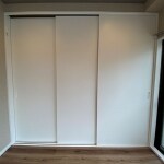 収納は、突っ張り棚から隠せる扉付きの収納に!取りやすいよう天井より少し低い位置についているので収納の上部にも物が置けるので収納力も格段にアップしました。