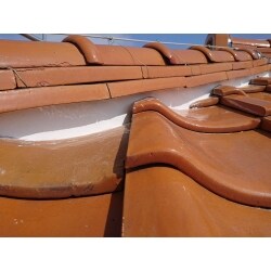 点検の結果、銅板の穴あきが発覚しました。 また漆喰も剥がれており、補修が必要な状況でしたので 谷板金の交換と漆喰の塗り直しをご提案しました。