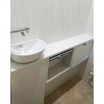 手洗い奥の壁を撤去後、ご希望の手洗いを取りつけました。