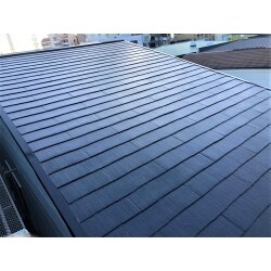 屋根全体に色あせや劣化、屋根の先端部には欠けも見受けられました。高圧洗浄をしっかり行った後、欠け部分は取替えではなくコーキングの補修にて対応し、遮熱性に優れたアステックのスーパーシャネツサーモFを3回塗りいたしました。