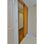 リフォーム前と比べると、リフォーム前の使いにくさがわかると思います。 洗濯機の前に人がいたら、ドンってドアがぶつかってしまいます。