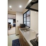 一人暮らしにちょうどいいコンパクトなキッチンに入れ替えました。 部屋側との間の壁にはオシャレな室内窓を設置し、明るい光が入ります。