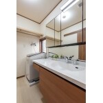 洗面室と浴室の位置を取替え設備交換を行いました。 洗面台を最新のものに取り替えることにより、格段にお手入れがしやすくなりました。 また、洗面ボウルの横にスペースがあることにより、二人同時に洗面台を利用できるため、朝の忙しい時間も一安心です。