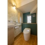 トイレに関するご要望は特にありませんでしたが、 元々タイル張りのトイレ空間と床の段差が有ったので 寒さや段差解消、そして寝室の近くに配置出来たら 夜も安心かなと、提案させていただきました。 2階にはトイレがありませんでしたので、娘さんが2階から降りてきて使う時にもアクセスしやすいようにと考えました。 ショールームで最新式のトイレをごらんいただき、 とても感動されていました。デザインや清掃性も良く、 手洗器は自動水栓を採用しました。