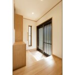 壁耐震補強をするため、玄関・玄関ホールも改修しました。 式台は奥行が狭く、上り下りが大変だったため、式台を造り直し、ゆったりとさせました。 靴を出し入れがしやすいよう、下駄箱に沿って式台を設けました。そのため、土間部分も巾が広くなり、2人並んでもゆとりのスペースになりました。 ルーバー窓でキッチンと玄関に採光採風に配慮しました。