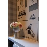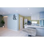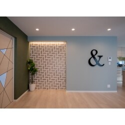 リビングの真ん中にマグネットウォールを作ってマグネット式の発泡スチロールで「&」を作ったり、キッチンパネルにオリジナルのウォールステッカーを貼ったり、大きな開口部を写真の額縁に見立てたり、明かり窓に鳥を飛ばしてみたり… 今回はリノベーションにプラスひとさじアートを取り入れました。