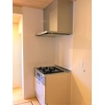 以前はI型キッチン、レンジフードはプロペラファンでした。調理スペースや収納スペースが取りづらい空間となっておりました。