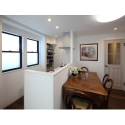 1階西側を増築し、LDKを広く使えるようにしました。キッチンと浴室のガラスは乳白色の複合サッシを採用し、断熱性を上げると共に空間のイメージUPにもつなげています。主要なスペースには床暖房を設置。また、各所において段差を解消する工夫をしています。オーナー様には「真冬でも暖かく過ごせるようになって良かった。デザインとしても他には無いオリジナルな出来になったと思う。 残りの部屋のリフォームもぜひ行いたい。」と感想をいただきました。