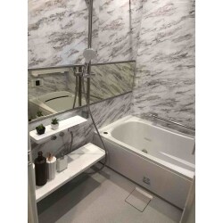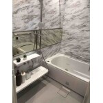 TOTOの【シンラ】をご提案しました。 弊社のイベント特典にて、床ワイパー洗浄をご選びいただきました。床ワイパー洗浄とは、お風呂を出る際にボタンひとつで床の除菌をしてくれるワイパーです。毎日のお掃除が格段に楽になりそうです。 また、壁パネルを全面大理石調に。高級感のある、海外のホテルのような雰囲気がとても素敵です。