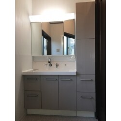 収納キャビネット付きでスッキリ!洗面化粧台