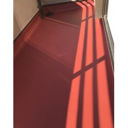 塗ることで厚みの出る防水塗料なので、まるでシートを張りなおしたような仕上がりになりました。今までとは違う印象をとのことで、レンガ色を選ばれました。