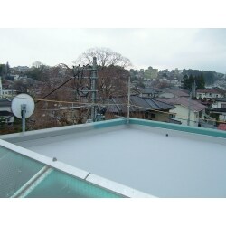高圧洗浄後、防水施工。 立ち上がり部分もしっかりと防水し、漏水対策はバッチリです。