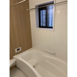 優しい木目にホワイトが映えて、ナチュラルで明るい浴室に仕上がりました。浴槽手すり、スライドバーで安全性にも考慮。標準装備が嬉しい人造大理石バスタブは清掃性も優れています。