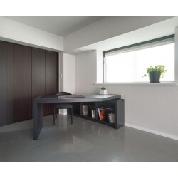 お子様が独立して夫婦二人になったマンションの改装工事。ご主人の仕事の関係で、自宅での作業や来客のもてなしも多いとのこと。和室を書斎として使われていましたが使い勝手が悪いと感じてらっしゃいました。また、奥様は来客時にリビングに物が溢れていることがストレスに。適材適所に収納が充実した広いリビングと水まわりを希望されており、かつ上質な住空間を演出する素材へのこだわりをお持ちでした。