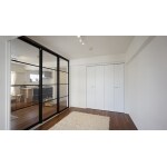 お打ち合わせを重ね決まったのが、デザイン性の高いプランでした。リビングにはアルミ製の可動間仕切りを使い、間を仕切りつつも開放感のある空間を作りました