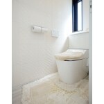 間取りを変更し、トイレの位置を変えることで、広くすることができました。また、花粉症をお持ちの奥様にアレルゲンを軽減でき、脱臭機能のあるタイルをおススメしました。