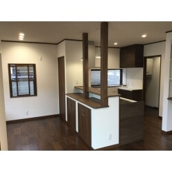 既存柱を上手く取り込んだ、歴史を感じられるリビング