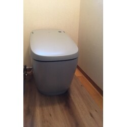 ご要望に合った高機能タンクレストイレをご提案させていただきました。水漏れからシミになっていた床は、便器色に合うカラーの床板をご提案いたしました。