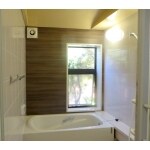床、壁、天井、浴槽を洗浄、コーティングをして窓側面に木目調のデザインパネルを張りました。新設の様にきれいになりました。