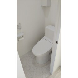 トイレが白なので、クロスは白、クッションフロアは少し柄を入れてアクセントを付けました。