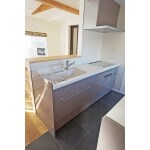 食洗機とガスオーブンを内蔵しているシステムキッチン