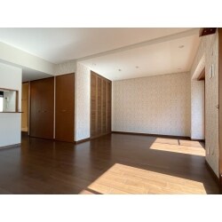 リビング横の和室をフローリング貼にして広々としたリビングダイニングに間取り変更しました。 和室だった部分やリビングの一部の壁には輸入クロスのTECIDO(テシード)を施工しました。 床材は朝日ウッドテック ライブナチュラルネダレス145 ブラックウォールナット色を施工しました。 継ぎ目のない突き板1枚貼り広巾タイプのため、天然木のテイストがより活きたワンランク上のグレード感が味わえます。