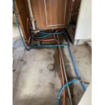 幅も高さも最大限大きく設置できるよう周囲の排水配管との取り合いなども造作し配管も隠蔽することですっきりした脱衣場になりました。