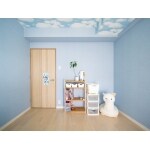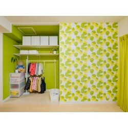 ふすまがあった上部の垂れ壁を撤去し、天井まで広くしました。 明るいグリーンの壁紙はお嬢さんと選んで頂いた柄。ホワイトの収納用品と合う色になりました。
