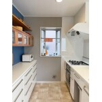 リピートのお客様のご紹介でキッチンのリフォームをご検討されていたM様。対面キッチンの交換及び背面収納の設置工事をさせて頂きました。 キッチンカウンター廻りを白を基調にし、壁面収納にアクセントカラーの壁紙を貼ることで、メリハリのあるキッチンになりました。