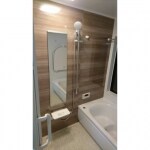 ウォールナット柄が落ち着く浴室