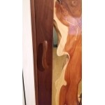 施主提供の自然木を加工しドアガラス面に取付、耐荷重を考慮してウォールナットの枠を造作し、個性あふれるリビングドアになりました。