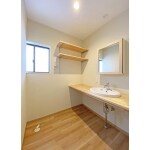 タイル貼りの洗面所とヒノキ張りの洗面所