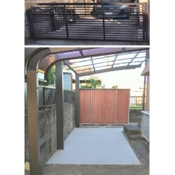 ・跳ね上げ門扉の交換。 ・カーポートの増設、土間コンクリートの延長舗装。